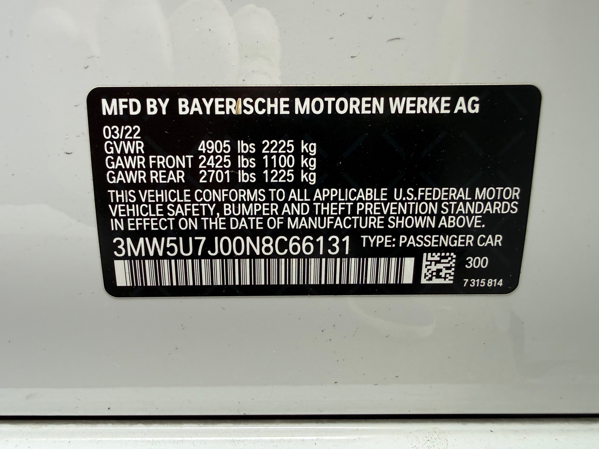 • VIN Number 3MW5U7J00N8C66131