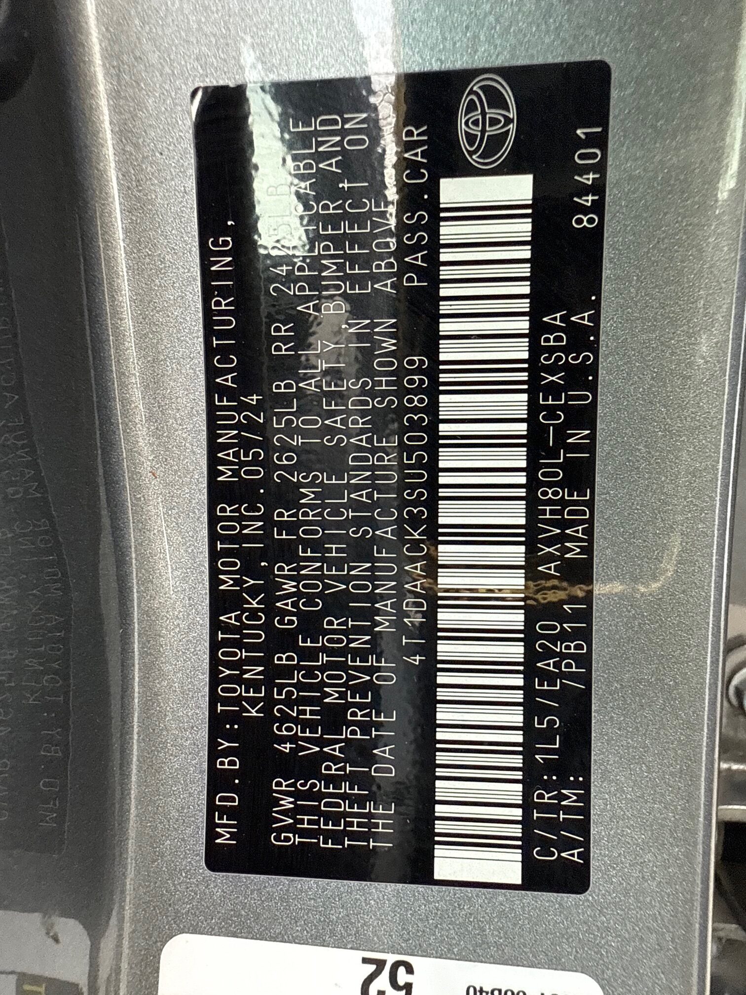 • VIN Number 4T1DAACK3SU503899