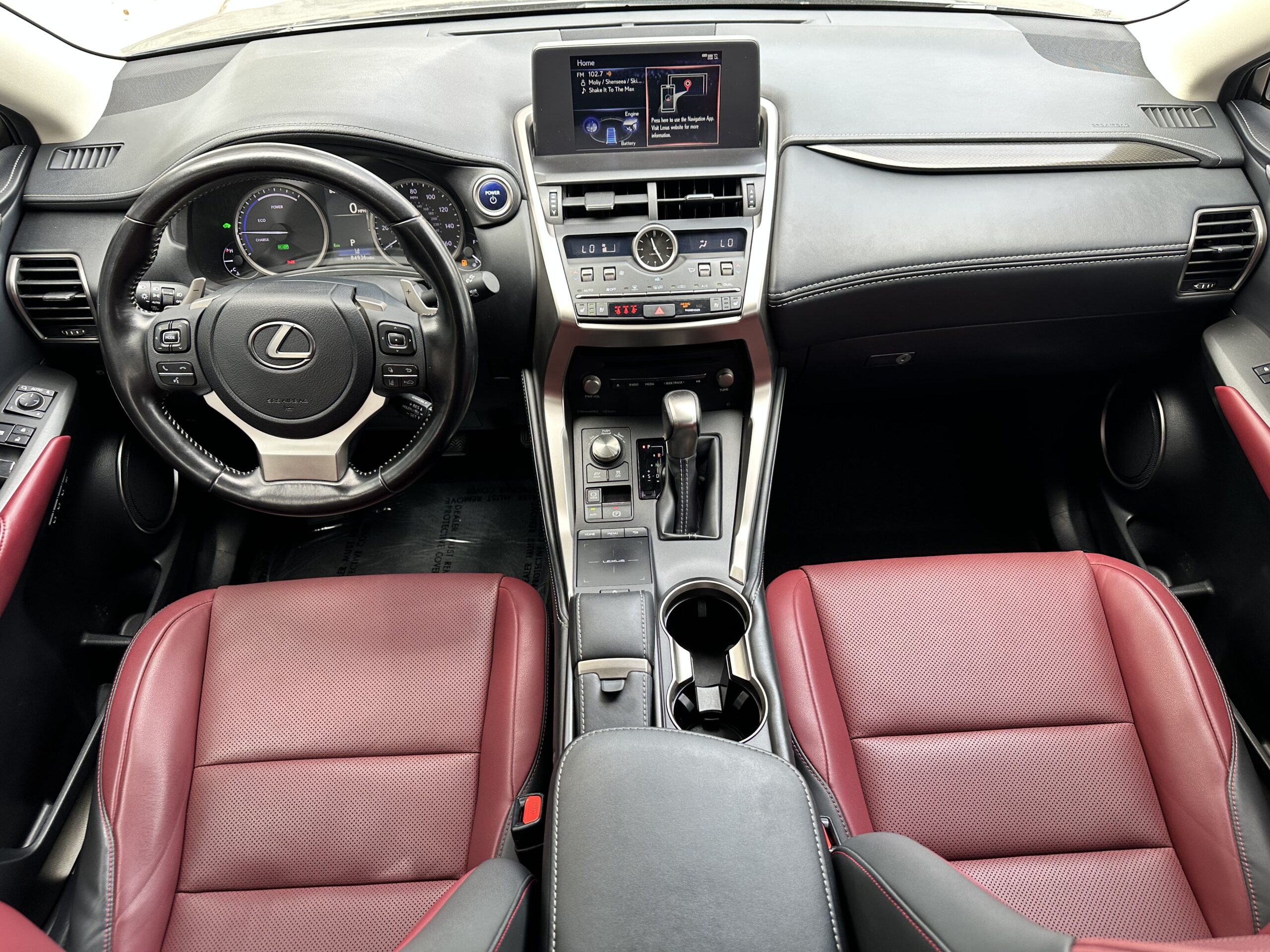 Our 2021 Lexus NX300h combines a beautiful red interior with a sleek gray exterior, giving it a bold and luxurious look. As a hybrid SUV, it delivers excellent fuel efficiency without sacrificing comfort or space, making it perfect for daily commutes, long drives, and everything in between.